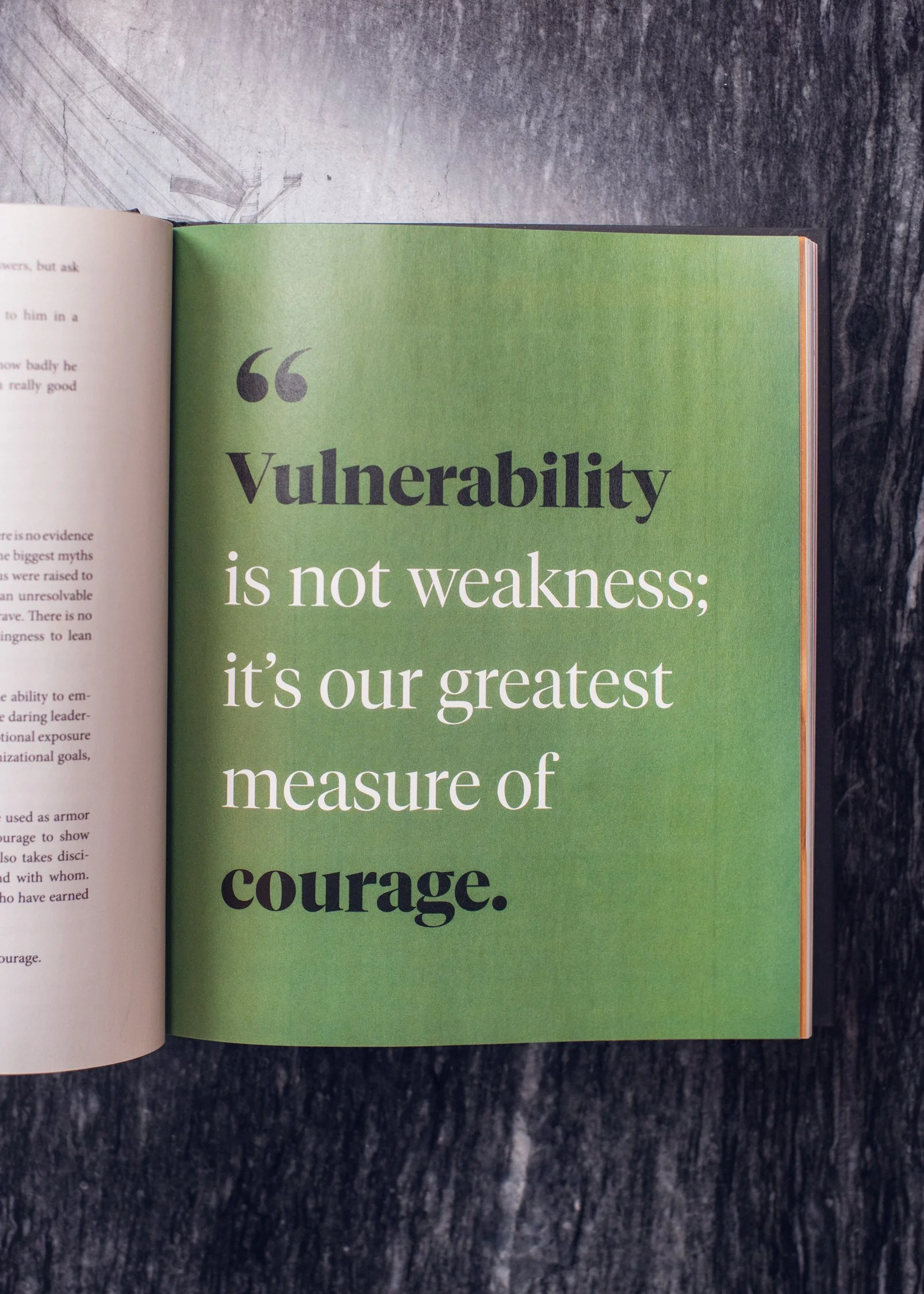Quote in Book: Vulnerability is not a weakness, it's our greatest measure of courage.